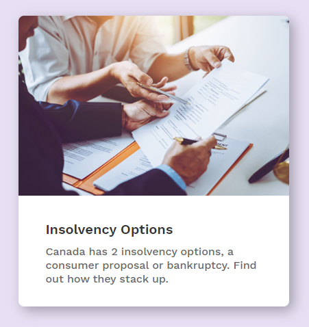 Canada has 2 insolvency options, a consumer proposal or bankruptcy. Find out how they stack up.